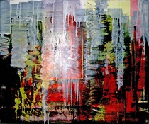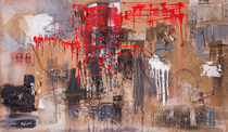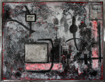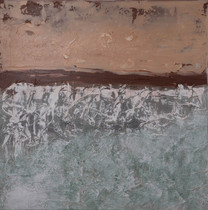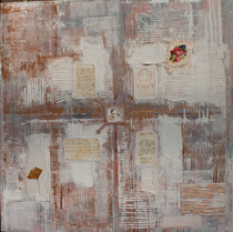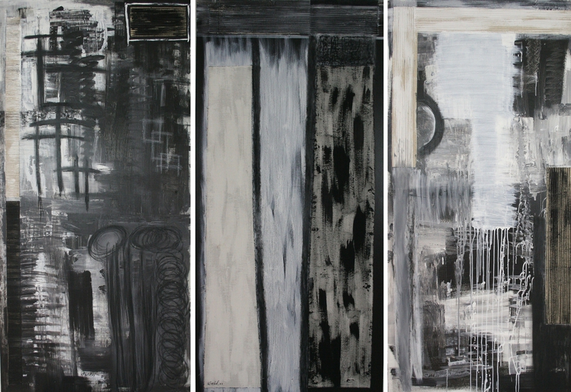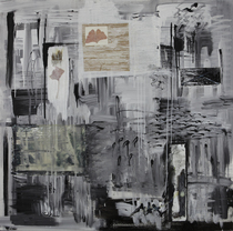 In meiner Malerei verarbeite ich immer öfter „vermeintlich Nutzloses“ aber auch Sand, Holz, Eisen, Papier und Textilien.